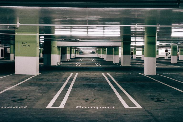 Keywords: parking space asphalt urban empty traffic city gray carpark underground convenient large endless vanishing point
