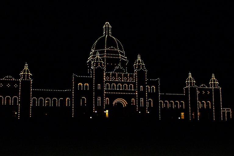 Keywords: parliament building victoria city night light bulbs contoures outlining edging canada