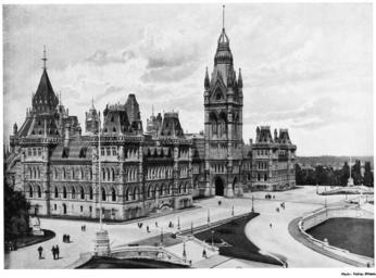 | Keywords: Parliament Ottawa QE1 28.jpg The original Centre Block 1859-1916 on Parliament Hill destroyed by the Parliament Hill fire of 1916 in Ottawa Ontario Canada <p> original caption Parliament house Ottawa The Queen's Empire Volume 1 Cassell Co London 1897 1899 creator William James Topley For Cassell Co London PD-Canada PD-old-70-1923 The Queen's Empire book Original Centre Block 1859-1916 1897 in Ottawa Photographs by William James Topley from the 1890s | ||||