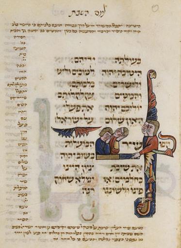 Keywords: Parma Psalter 188a.l.jpg en Psalm 126 - Two human figures are looking up one with parted lips and the other with his left arm stretched out To the left of the word are two more human figures with eyes closed and inclined heads resting on their right hands The latter illustrate v 1 'When the Lord restored the fortunes of Zion we were like those who dream' and the former either the word shir song of the superscription or v 2 'Then our mouth was filled with shouts of joy' century 13 http //www facsimile-editions com/en/pp/default aspx The Parma Psalter author PD-Art Uploaded with UploadWizard Parma Psalter Psalm 126 |