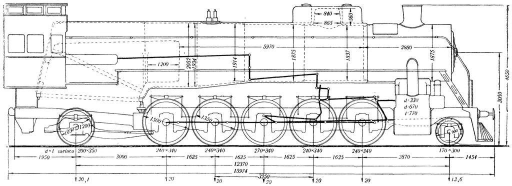 Keywords: Parovoz FD razmer.jpg ru Основные азме ы па овоза ФД20-3 Альбом схем па овозов и паспо тов 1935 Author 1935 PD-old Soviet locomotive class ФД