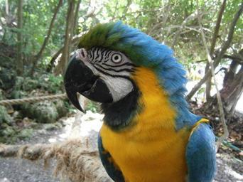 Keywords: parrot bird blue yellow eye beak tropical wildlife feather exotic animal