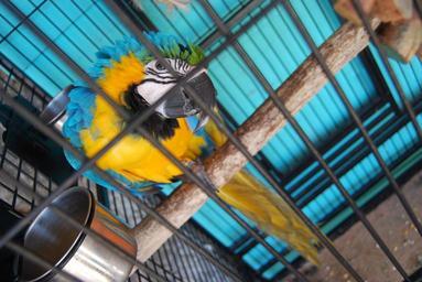 Keywords: parrot cage birdcage bird caged domestic pet featheres feathered exotic perch perched creature animal colorful colourful beak