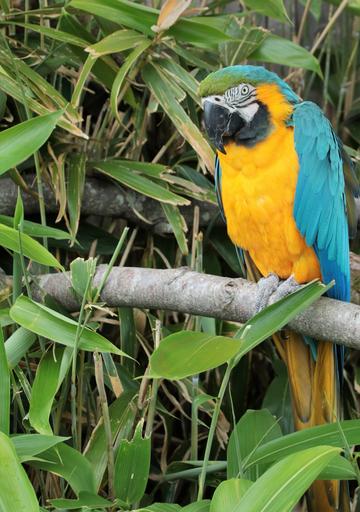 Keywords: parrot macaw bird tropical colorful wildlife feather colour yellow blue avian rainforest birdlife plumage nature