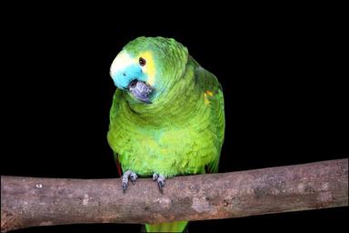 Keywords: parrot on black background looking pet bird zoo green