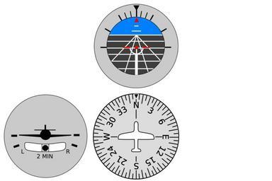 | Keywords: Partial panel 1a.svg Bild 2 Bei der Instrumentenflugausbildung wird das Fliegen mit partial panel trainier der Ausfall wird durch Abkleben der entsprechenden Instrumente z B Klebezettel simuliert auch bei einem realen Ausfall kann es dem Piloten helfen wenn er die ausgefallenen Instrumente markiert oder abdeckt um nicht von ihrer falschen Anzeige verwirrt zu werden Own Luftpirat Flight instruments SVG aircraft instruments | ||||