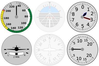 Keywords: Partial panel 6.svg bei Ausfall der Vakuumpumpe fällt der künstliche Horizont und der Kurskreisel aus partial panel hier im Bild transparent abgedeckt Own Luftpirat Flight instruments SVG aircraft instruments