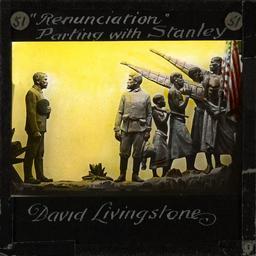 | Keywords: Parting of David Livingstone (1813-1873) and Henry Morton Stanley (1841-1904), Africa, ca. 1875-ca. 1940 (imp-cswc-GB-237-CSWC47-LS16-051).jpg en <br> Parting of David Livingstone 1813-1873 and Henry Morton Stanley 1841-1904 Africa ca 1875-ca 1940 Renuncication Parting with Stanley Image of a tableau portraying the parting of David Livingstone and the journalist Henry Morton Stanley in 1871 Stanley was sent to find the Scottish missionary and explorer by the New York Herald Newspaper It was this meeting that gave rise to the famous phase Dr Livingstone I presume The men are pictured meeting in a village with a hut in the background A man stands behind Stanley holding the flag of the USA ; This belongs to a series of Church of Scotland Foreign Missions Committee lantern slides relating to David Livingstone 1813-1873 the Scottish missionary who was best known as an explorer of Africa and anti-slavery campaigner Livingstone was born in Blantyre Scotland and after working in the local cotton mill from the age of 10 he went on to study medicine and theology in Glasgow in 1836 Having decided to become a missionary he was posted to southern Africa in 1841 In 1845 he married Mary Moffat During his life Livingstone carried out exploration of southern eastern and central Africa he discovered and named the Victoria Falls and it was his meeting with H M Stanley during a search for the source of the Nile that gave rise to the popular quotation Dr Livingstone I presume David Livingstone died in Africa on 1 May 1873 and his body was buried in Westminster Abbey Photographer Unknown Subject personal name Stanley Henry M Henry Morton 1841-1904; Livingstone David 1813-1873 Filename imp-cswc-GB-237-CSWC47-LS16-051 tif Coverage date circa 1875/1940 Part of collection International Mission Photography Archive ca 1860-ca 1960 Type images Part of subcollection Photographs from the Centre for the Study of World Christianity University of Edinburgh U K ca 1900-ca 1940s Repository name Centre for the Study of World Christianity Archival file impaunpub_Volume7/1884 url Repository address The University of Edinburgh School of Divinity New College Mound Place Edinburgh EH1 2LX United Kingdom Geographic subject country Malawi Format aacr2 1 lantern slide 8 x 8 cm Geographic subject continent Africa Rights Contact the repository for details Part of series David Livingstone LS16 Repository email divinity-CSWC ed ac uk Subject lcsh Keyword Missionaries Date created circa 1875/1940 Publisher of the digital version University of Southern California Libraries Subject aat genre portraits Format aat lantern slides Legacy record ID impa-m69467 Access conditions http //www ed ac uk/schools-departments/divinity/research/centres/world-christianity/collections-resources File GB 237 CSWC47/LS16/51 circa 1875 /1940 author http //digitallibrary usc edu/cdm/ref/collection/p15799coll123/id/65000 PD-old-70-1923 Magic lantern images Images from USC Digital Library uploaded by Fæ International Mission Photography Archive ca 1860-ca 1960 David Livingstone IMPA Henry Morton Stanley |