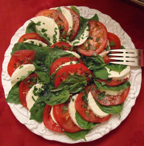 Party food dish 8 salad tomatoes cheese lettuce spinach.jpg (1165x1186)