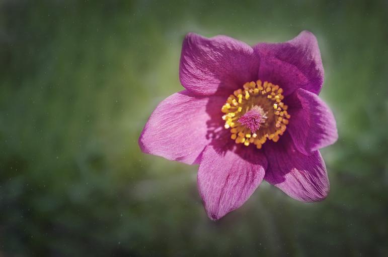 Keywords: pasque flower common pasque flower flower blossom bloom violet purple fuchsia petals flower stamp garden spring spring flower closeup nature plant