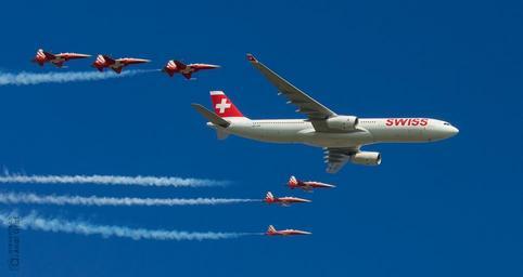 Keywords: passenger aircraft fighter jet flugshow swiss airline patrol suisse flyby