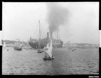 | Keywords: anniversary regatta anniversaryregatta regatta sydney harbour sydneyharbour sydney race flagship harbour scenes harbourscenes passenger liner passengerliner mcmahons point mcmahonspoint milsons point milsonspoint königin luise königinluise hms royal arthyr hmsroyalarthyr 1898 hms royal arthur hmsroyalarthur north german lloyd northgermanlloyd norddeutscher lloyd norddeutscherlloyd omar blackandwhite monochrome photo border outdoor black and white The North German Lloyd passenger ship KÖNIGIN LUISE was Flagship of the Anniversary Regatta in 1898 and 1899. HMS ROYAL ARTHUR, flagship of the Australia Station from 1897 to 1904, is in the background to the far right. In the January 1898 regatta, KÖNIGIN LUISE was moored near Lavender Bay and in the 1899 regatta it was moored near Neutral Bay; therefore this photograph is likely to be from the 1898 regatta. The Milsons Point ferry and cable terminal appears to the left of the vessel. The ANMM undertakes research and accepts public comments that enhance the information we hold about images in our collection. This record has been updated accordingly. Photographer: unknown Object no. 00017554 The North German Lloyd passenger ship KÖNIGIN LUISE was Flagship of the Anniversary Regatta in 1898 and 1899. HMS ROYAL ARTHUR, flagship of the Australia Station from 1897 to 1904, is in the background to the far right. In the January 1898 regatta, KÖNIGIN LUISE was moored near Lavender Bay and in the 1899 regatta it was moored near Neutral Bay; therefore this photograph is likely to be from the 1898 regatta. The Milsons Point ferry and cable terminal appears to the left of the vessel. The ANMM undertakes research and accepts public comments that enhance the information we hold about images in our collection. This record has been updated accordingly. Photographer: unknown Object no. 00017554 |
