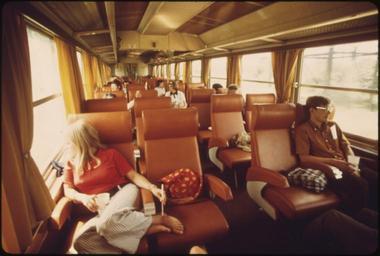 | Keywords: PASSENGERS VIEW THE SCENERY BETWEEN ST. LOUIS, MISSOURI, AND CHICAGO, ILLINOIS, ON THE AMTRAK TURBOLINER. AMTRAK... - NARA - 556062.jpg Scope and content General notes 556062 Local identifier 412-DA-13610 Environmental Protection Agency 12/02/1970 - NARA-Author O'Rear Charles 1941- Photographer 3403717 <br /> Saint Louis St Louis Indep City Missouri United States North and Central America inhabited place 4202839 38 617 -90 183 <br /> Still Picture Records Section Special Media Archives Services Division NWCS-S National Archives at College Park 8601 Adelphi Road College Park MD 20740-6001 06/1974 Record group Record Group 412 Records of the Environmental Protection Agency 1944 - 2006 Record group ARC 708 DOCUMERICA The Environmental Protection Agency's Program to Photographically Document Subjects of Environmental Concern compiled 1972 - 1977 Series ARC 542493 File unit File unit ARC Variant control numbers Agency-Assigned Identifier 227/50/013610<br /> NAIL Control Number NWDNS-412-DA-13610 Other versions <gallery> File PASSENGERS_VIEW_THE_SCENERY_BETWEEN_ST _LOUIS _MISSOURI _AND_CHICAGO _ILLINOIS _ON_THE_AMTRAK_TURBOLINER _AMTRAK _-_NARA_-_556062 tif tif File PASSENGERS_VIEW_THE_SCENERY_BETWEEN_ST _LOUIS _MISSOURI _AND_CHICAGO _ILLINOIS _ON_THE_AMTRAK_TURBOLINER _AMTRAK _-_NARA_-_556062 jpg jpg </gallery> NARA-cooperation PD-USGov Turboliner Amtrak Class RTG Amtrak in 1974 Train interiors in the United States June 1974 in the United States |