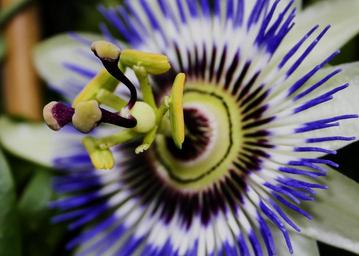 Keywords: passiflora blossom bloom close passion flower nature plant exotic pistil passion flower plant bloom passion fruit flower blue passion flower purple white passiflora caerulea passiflora cearulae climber exotic flower stamp botany passifloraceae garden