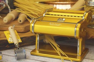 Keywords: pasta machine shop window kitchenware spaghetti yellow food equipment tool