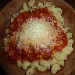 Keywords: pasta noodles tomato sauce eat cheese grated cheese food carbohydrates cook lunch sauce italian