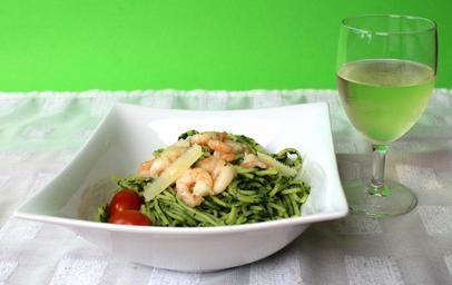 Keywords: pasta spaghetti shrimp wine green