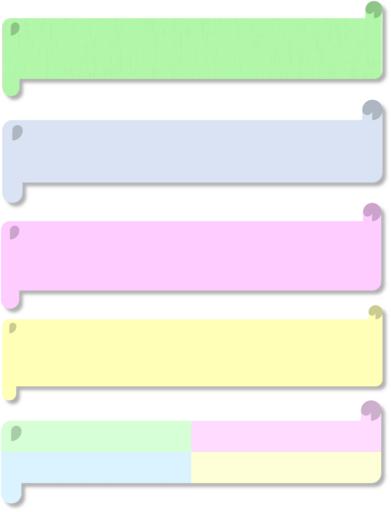 | Keywords: pastel 3d scrolls banners labels headlines highlights titles decoration decorative subtle colors spring fresh baby blue pink yellow green invitation letting element ribbon organize text template sign frame ornate message award curled fancy announcement scrapbook ad announce topic set emphasis emphasize collection code |