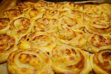 Keywords: pastries snail treat calories hearty puff pastry scalloped bake baked goods