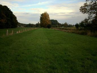 Keywords: pasture meadow grass fence wood tree trees landscape autumn nature atmosphere clouds sky cloud blue rest