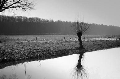 Keywords: pasture river niederrhein landscape nature green grey spring weeping willow