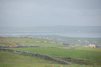 Keywords: pastures walls landscape grass farm meadow field green rural stone agriculture outdoor countryside foggy misty ireland house view bay grassland land