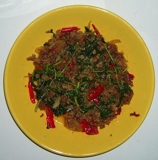 | Keywords: Pat Kapauh.JPG Mu Phat Bai Kaphrao หมู ัดใบกะ พรา - fried pork with basilleaf a Thai dish own 2005-12-13 User Mattes Pork dishes of Thailand Plates with food Plan views of food Taken with Panasonic Lumix DMC-LC50 Work by Mattes 2005 User Mattes/Contributions/Topics/Nutrition Yellow plates Round plates |
