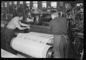 | Keywords: Paterson, New Jersey - Textiles. Madison Silk Co. Setting harness onto loom. - NARA - 518610.jpg Scope and content General notes 518610 Local identifier 69-RP-372 Federal Works Agency Work Projects Administration National Research Project ca 1941 - ca 1942 NARA-Author Hine Lewis Wickes 1874-1940 Photographer 1122914 <br /> Paterson Passaic New Jersey United States North and Central America inhabited place 4202736 40 917 -74 167 <br /> Still Picture Records Section Special Media Archives Services Division NWCS-S National Archives at College Park 8601 Adelphi Road College Park MD 20740-6001 1937-03-18 Record group Record Group 69 Records of the Work Projects Administration 1922 - 1944 Record group ARC 398 Lewis Hine Photographs for the National Research Project compiled 1936 - 1937 Series ARC 518291 File unit File unit ARC Variant control numbers NAIL Control Number NWDNS-69-RP-372 Other versions <gallery> File Paterson _New_Jersey_-_Textiles _Madison_Silk_Co _Setting_harness_onto_loom _-_NARA_-_518610 tif tif File Paterson _New_Jersey_-_Textiles _Madison_Silk_Co _Setting_harness_onto_loom _-_NARA_-_518610 jpg jpg </gallery> NARA-cooperation PD-USGov Check categories-NARA 2011 October 20 Textile industry in New Jersey Silk weaving |