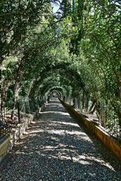 Keywords: path greenery landscape tranquil garden sunlight peaceful covered evergreen