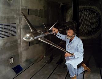 | Keywords: langley transport model transportmodel w.l. jones national transonic facility wljonesnationaltransonicfacility NASA technician W.L. Jones inspects a transport model Pathfinder I between test runs at Langley's National Transonic Facility (NTF). The stainless steel model is representative of the next generation of subsonic transports. With the help of super-cold nitrogen and high pressure, the NTF is the first major wind tunnel that can simulate full scale aerodynamic flight conditions. NASA technician W.L. Jones inspects a transport model Pathfinder I between test runs at Langley's National Transonic Facility (NTF). The stainless steel model is representative of the next generation of subsonic transports. With the help of super-cold nitrogen and high pressure, the NTF is the first major wind tunnel that can simulate full scale aerodynamic flight conditions. |