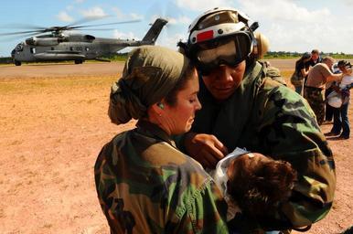 | Keywords: Patients Assissted During CP 2008 DVIDS111010.jpg en Cmdr Angelia Elum-Oneal hands an Operation Smile patient to Lt Cmdr Maria Norbeck after a successful surgery aboard the amphibious assault ship USS Kearsarge during the humanitarian assistance mission Continuing Promise 2008 Kearsarge is supporting the Caribbean phase of CP 2008 an equal-partnership mission between the United States Canada the Netherlands Brazil Nicaragua Panama Colombia Dominican Republic Trinidad and Tobago and Guyana 2008-08-21 https //www dvidshub net/image/111010 080821-N-+++++-670 2008-08-26 13 35 PUERTO CABEZAS NI PD-USGov-Military-Navy USS Kearsarge LHD-3 Images from DoD uploaded by Fæ |