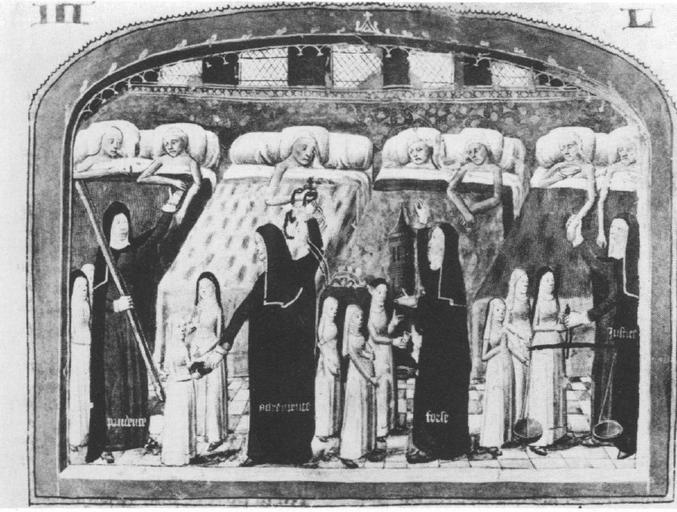| Keywords: Patients of the Hotel-Dieu in their beds.jpg Patients of the Hotel-Dieu in their bed Lane Barbara 'Requiem aeternam dona eis' The Beaune Last Judgment and the Mass of the Dead Simiolus Netherlands Quarterly for the History of Art Volume 19 No 3 1989 Livre de vie active Paris Musee de 1'Assistance Publique cat nr 59 fol 77 author PD-Art Hospitals in art 1500s History of medicine 1500s Sickrooms 1500s 16th-century illuminated manuscripts Illuminated manuscripts in France Collections of Musée de l'Assistance Publique-Hopitaux de Paris 16th-century way of life |