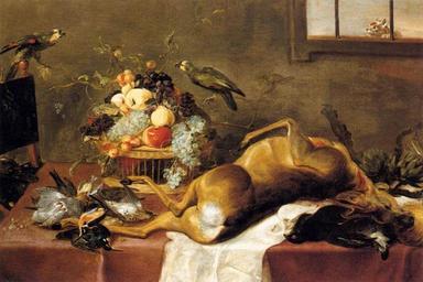 | Keywords: Paul de Vos - Still-Life - WGA25330.jpg Artwork Creator Paul de Vos other date firsthalf other date century 17 Oil on canvas Institution Budapest Museum of Fine Arts object history credit line Still life accession number WGA link 25330 http //www wga hu/art/v/vos/paul/stillife jpg http //www wga hu/html/v/vos/paul/stillife html PD-old-100 painting still-life Flemish 1601-1650 Paul de Vos Southern Netherlandish paintings in the Museum of Fine Arts Budapest 17th-century still life paintings in Hungary WGA form painting WGA type still-life WGA School Flemish WGA time period 1601-1650 Oil still life paintings 17th-century still life paintings of fruit baskets 1601-1650 paintings 17th-century still life paintings of dead game by Paul de Vos Still life paintings with living birds Dead birds in art |