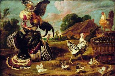 | Keywords: Paul de Vos Turkey and rooster.jpg Artwork Creator Paul de Vos s 1630 oil canvas cm 122 185 5 Institution National Museum Warsaw 0 accession number M Ob 2504 187280 object history ProvenanceEvent 1945 transfer National Museum in Warsaw credit line P De Vos f signature http //www museo pl/images/wystawy/46wystc0 jpg www museo pl See below 59102 PD-old-100 DEFAULTSORT 1630s; Turkey and rooster Paintings by Paul de Vos in the National Museum in Warsaw Baroque paintings of animals Turkeys in art Paintings of poultry Paintings of roosters Fighting animals in art |