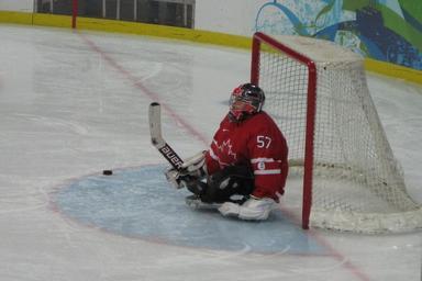 | Keywords: Paul Rosen - 2010 Paralympic Games.JPG Paul Rosen goalie for Canada's 2010 Paralympic team during warmup of their game against Japan own Mlm42 2010-03-18 49 14 38 99 N 123 6 27 98 W region CA Paralympic competitors from Canada 2010 Winter Paralympics athletes Ice sledge hockey at the 2010 Winter Paralympics Ice sledge hockey |