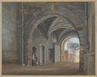 | Keywords: Paul Sandby - The Queen Elizabeth Gate - Google Art Project.jpg No inscription Inscription _Signed_and_Dated Signed in artist's hand in gouache lower left P Sandby Pinx 1767 Not on view Gouache on medium paper mounted on thick cream moderately textured laid paper architectural subject dogs vaulted drummers soldiers children women ceiling arches gate fifes genre subject men special url_id XAG-H7CCcZT67g PD-old-100-1923 1809 Google Art Project works by Paul Sandby Topographical views by Paul Sandby Gouache paintings Windsor Castle in art 1767 paintings in the United States |