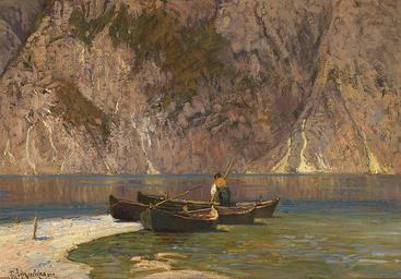 | Keywords: Paul Schreckhaase - Das Boot, Gardasee.jpg oil cardboard cm 36 50 5 object history credit line accession number http //www zeller de/de/katalog/auktion-95-dez-07/auktionsartikel/paul-schreckhaase-landschafts-und-marinemaler-starb-1912-in-berlin/ www zeller de PD-old-100 Paul Schreckhaase Paintings of Lake Garda Paintings of boats Images from Auktionshaus Zeller |