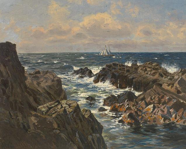 | Keywords: Paul Schreckhaase - Morgendliches Marinestück mit felsigem Ufer.jpg 62 17 23 94 N 17 29 18 50 E oil canvas cardboard cm 35 43 object history credit line accession number http //www zeller de/de/katalog/auktion-96-april-08/auktionsartikel/paul-schreckhaase-landschafts-und-marinemaler-starb-1912-in-berlin-2/ www zeller de PD-old-100 Paul Schreckhaase Baltic Sea in art Sailing ships in paintings Images from Auktionshaus Zeller | ||||