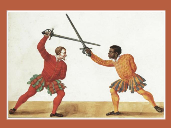 | Keywords: Paulus Hector Mair.- Two fencers, one of African descent, wielding an early rapier De arte athletica, Augsburg, Germany, ca 1542.png fr Paulus Hector Mair - A fencer of African descent wielding an early rapier or sidesword De arte athletica published in Augsburg Germany ca 1542 2015-09-18 https //outofthiscentury wordpress com/category/bizarre-and-unusual/ The Greatest African American and Afro-American Martial Artists in History Paulus Hector Mair other versions PD-old-70-1923 Uploaded with UploadWizard Fencing 1542 books African in Europe Paulus Hector Mair |