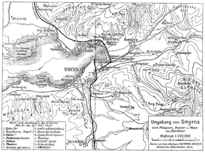 | Keywords: Pauly-Wissowa III A,1, 0747 Map Smyrna.png Umgebung von Smyrna nach Philippson Fontrier und Weber von Bürchner Paulys Realencyclopädie der classischen Altertumswissenschaft Band III A 1 Sp 749-750 1927 Ludwig Bürchner PD-old Paulys Realencyclopädie der classischen Altertumswissenschaft Band III A 1 Maps of Izmir Maps from Pauly-Wissowa |