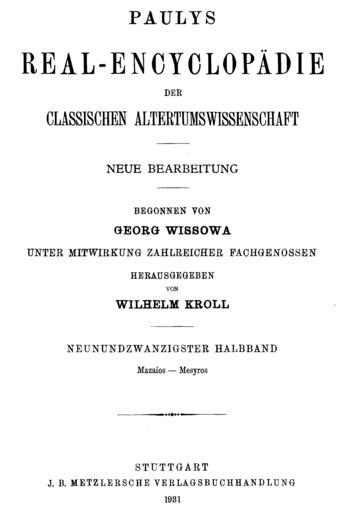 Keywords: Pauly-Wissowa XV,1, 0000 I.jpg 0001