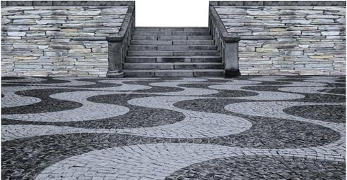 Keywords: pavement pavers square courtyard street plaza place area promenade patio sidewalk ground stone wall stairs walkway surface cobble tile path