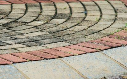 Keywords: paving stones tiles curved curves pavement floors blocks patterns grey gray pink red construction outdoors surfaces backgrounds textures