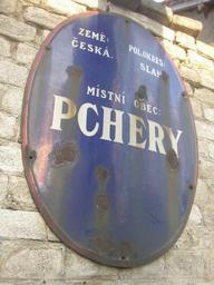 | Keywords: Pchery CZ house No 98 village sign from interwar period 196.jpg Pchery okres Kladno Historická prvorepubliková cedule s názvem obce na zdi u domu čp 98 na dolním konci Pcher směr Knovíz Pchery Kladno District Czech Republic An old sign indicating names of historical country Bohemia administrative district Slaný and municipality Pchery respectively presumably from 1920s or 1930s on a wall besides house No 98 in northeast end of the village Own 2008-03 User Miaow Miaow 50 11 47 0 N 14 07 13 1 E region CZ Pchery Oval signs of municipalities in Bohemia Rusty signs in the Czech Republic |