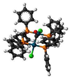 | Keywords: Pd2Cl2(CO)(dppm)2 3D ball.png Ball-and-stick model of the Pd2Cl2 CO dppm 2 complex a typical A-frame complex Colour code 505050 Carbon C black<br> F0F0F0 Hydrogen H white<br> F51E1E Oxygen O red<br> FA8C00 Phosphorus P orange<br> 14F014 Chlorine Cl green<br> 006881 Palladium Pd teal<br> 2011-07-03 own DS Visualizer Jynto talk Space-filling version Stick version Skeletal stick version cc-zero Images by Jynto Palladium complexes Dppm complexes chloro complexes carbonyl complexes | ||||