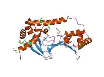 | Keywords: PDB 1zyb EBI.jpg All beta proteins Double-stranded beta-helix cAMP-binding domain-like cAMP-binding domain Probable transcription regulator BT4300 N-terminal domain Probable transcription regulator BT4300 N-terminal domain All alpha proteins DNA or RNA-binding 3-helical bundle Winged helix DNA-binding domain CAP C-terminal domain-like Probable transcription regulator BT4300 C-terminal domain EBI License 1zyb November 16 2008 Probable transcription regulator BT4300 C-terminal domain Files uploaded by Nichalp's script |