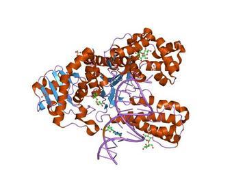 | Keywords: PDB 2hhq EBI.jpg Multi-domain proteins alpha and beta DNA or RNA polymerases DNA or RNA polymerases DNA polymerase I DNA polymerase I Klenow fragment EBI License 2hhq November 16 2008 DNA polymerase I Klenow fragment Files uploaded by Nichalp's script |
