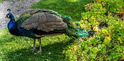 Keywords: peacock blue bright color majestic nature green feather elegance beak bird