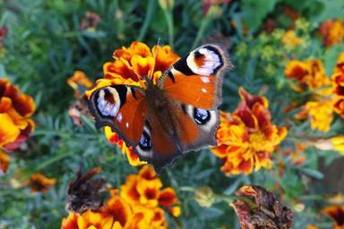 Keywords: peacock butterfly butterfly nature summer flowers orange red brown grass close yellow wing