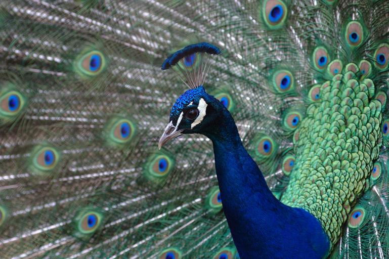 Keywords: peacock colorful feather plumage peacock feathers iridescent asian peacock zoo bird